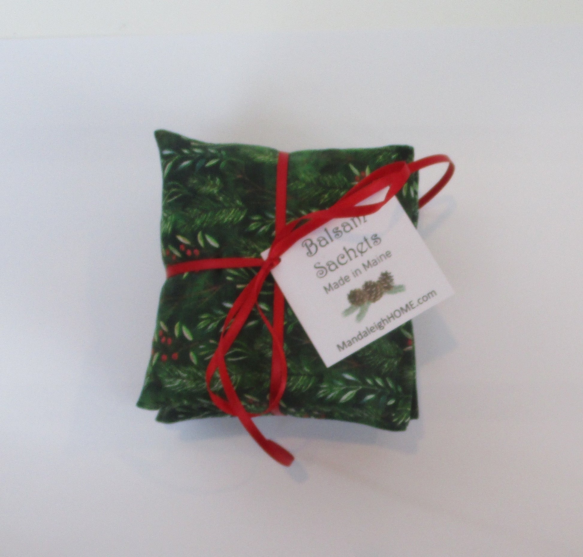 This listing is for a set of 3 sachets in a lovely deep green fabric printed with Christmas Greenery and Berries. It comes in your choice of Balsam, Lavender, or Cedar. There are no fillers or artificial scents, just pure dried product.