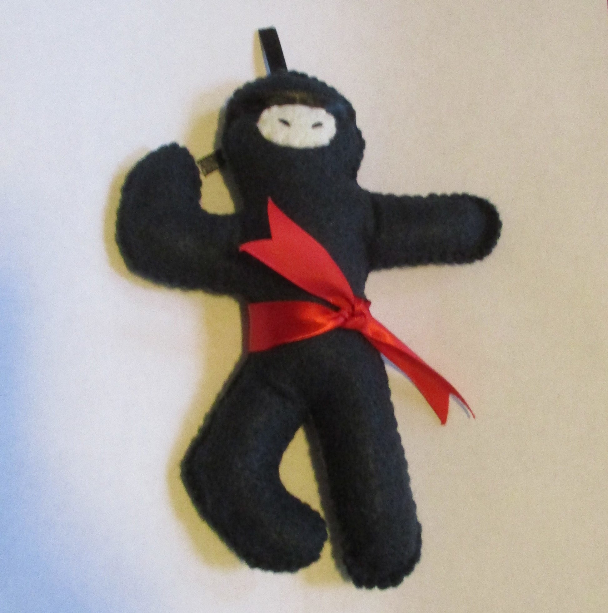 Felt Pocket Ninja stuffed soft toy action figure, ornament or Valentine gift