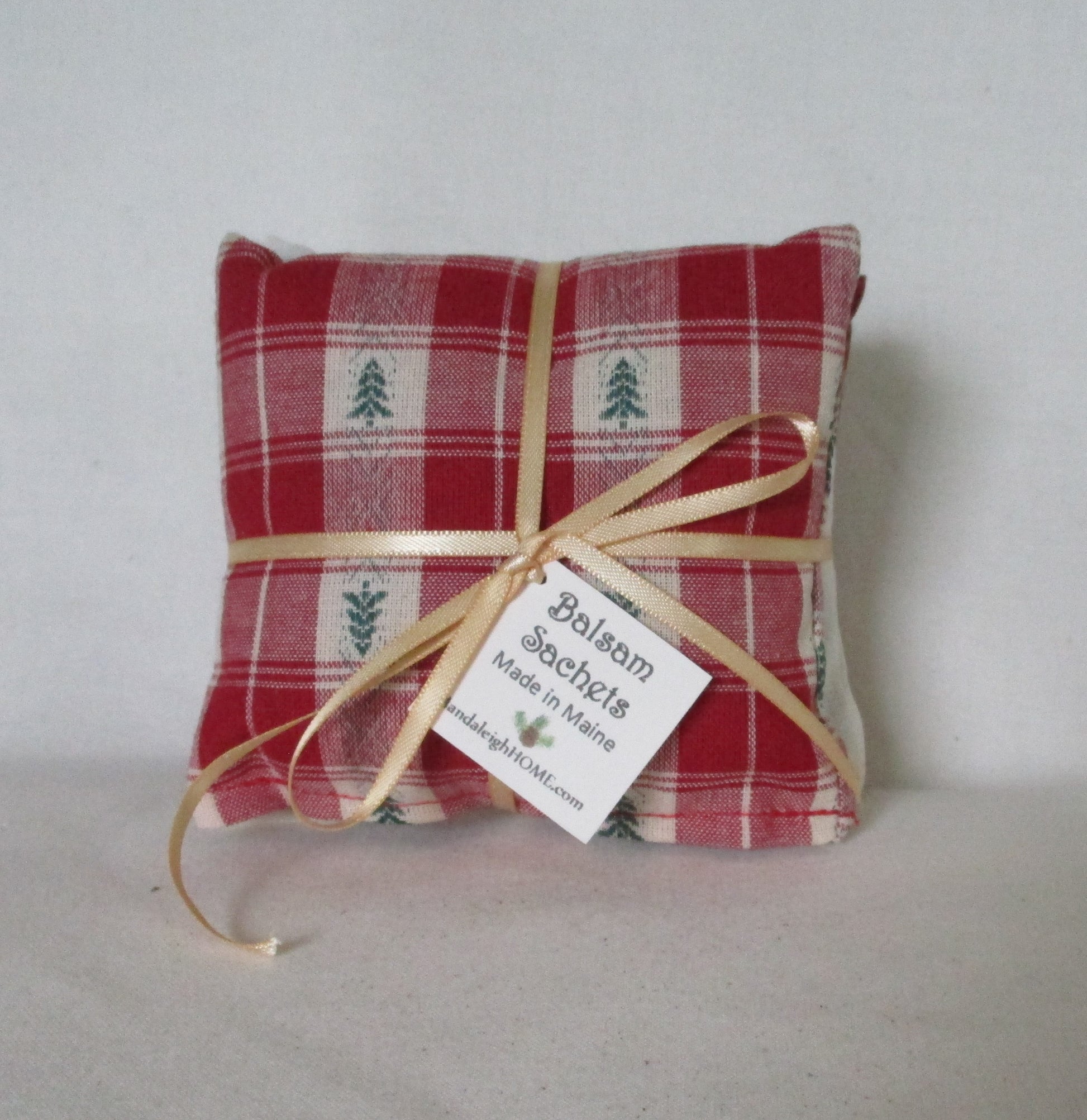 Maine Balsam Fir Sachet set of 3 Green Red and Beige Pine Tree Homespun Fabric Ready to Ship