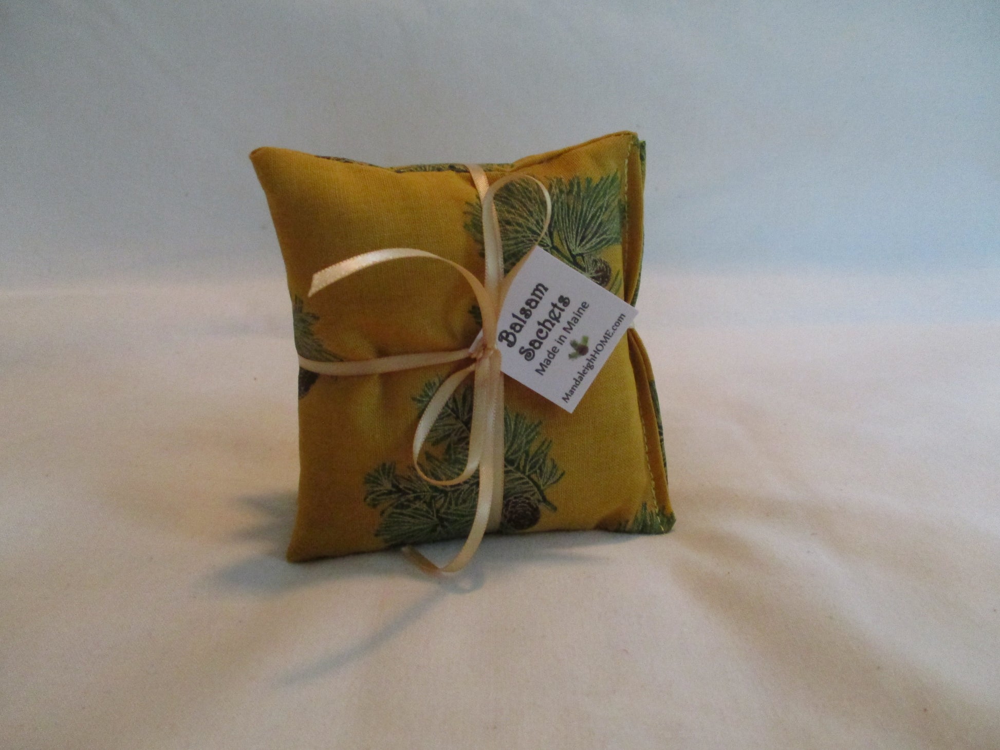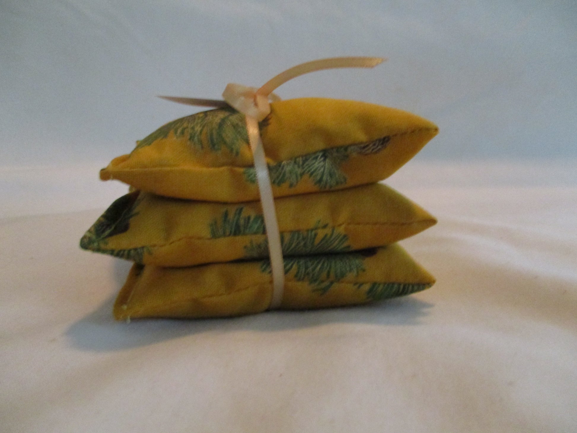These Sachets feature a printed Burnt Orange cotton with pine cone and tassel. This listing is for 3 sachets in your choice of Dried Balsam, Lavender or Cedar. Each sachet measures about 3 inches square and is packaged with satin ribbon and tag.
