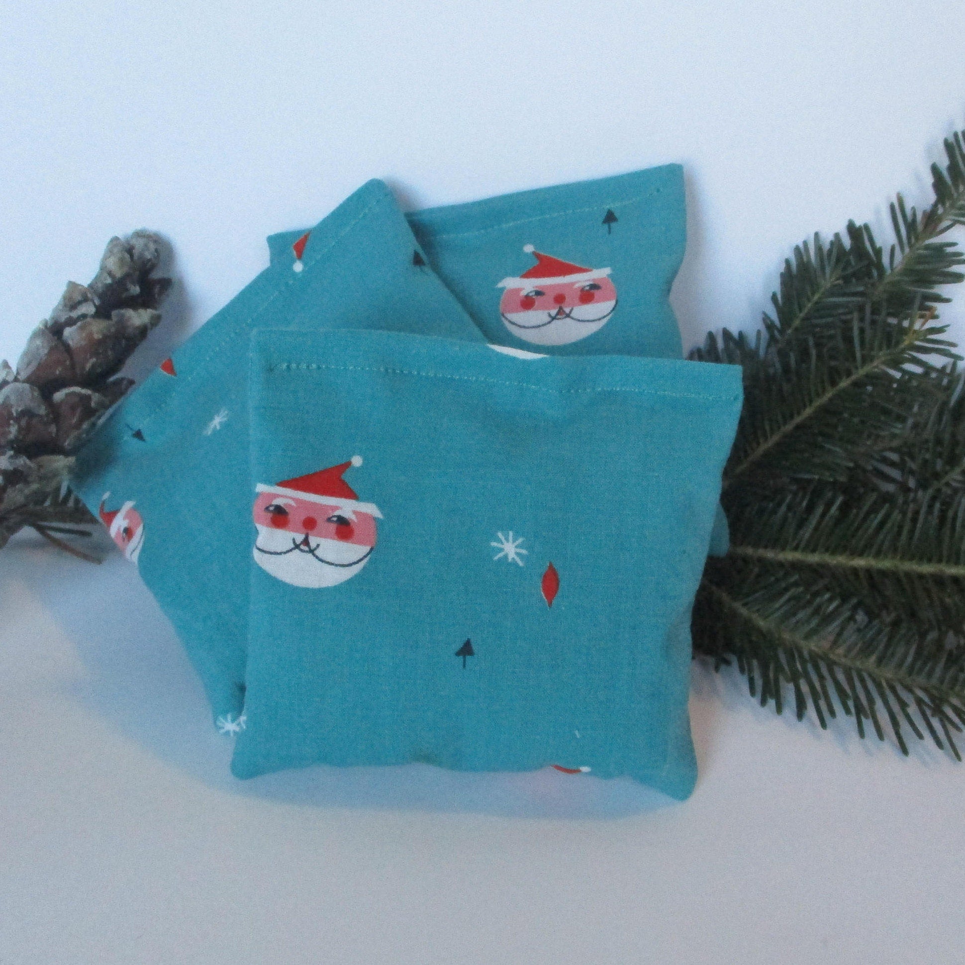 Santa Face on Teal Blue Balsam Sachet in Set of 3 Ready to Ship
